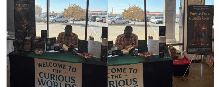 It was especially rewarding to see people connect with the stories behind Phineas Fitch and the Curious Chest and Whispers of the Fallen. Talking about the characters, worlds, and upcoming projects helped me find my rhythm and build excitement for the books still to come.